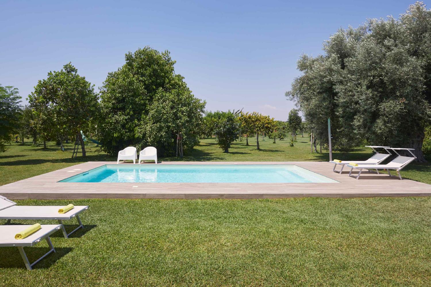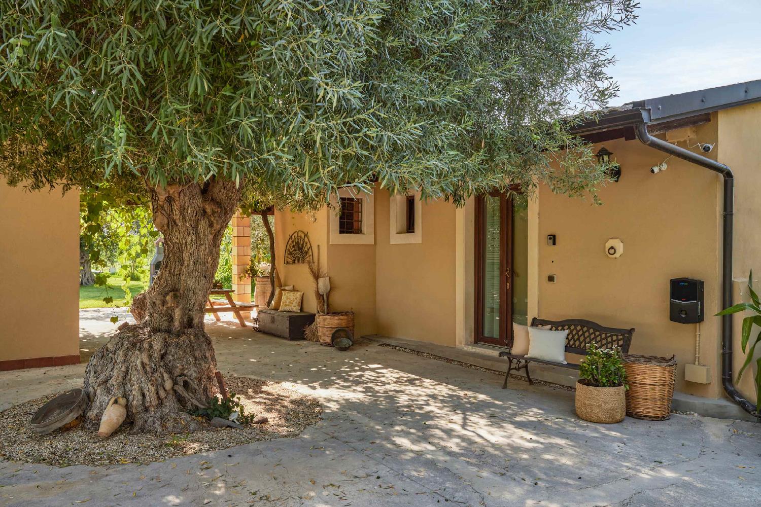 Located only 350 meters from the sandy beach of Lido di Noto, also known as Noto Marina, the property is surrounded by the Sicilian countryside and set within a large garden of approximately 25,000 square meters filled with lemon trees, olive trees and many tropical fruit plants.