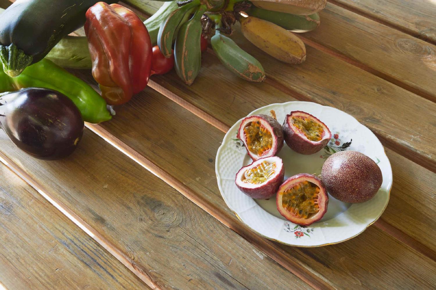 During their stay guests are welcome to pick fresh organic fruit directly from the trees in the garden, including lemons, oranges, mandarins, clementines, grapefruits, figs, grapes, pomegranates, mulberries, persimmons, plums, peaches, apricots, bananas, feijoa, avocado, mango, guava, cherimoya, white and black sapote, passion fruit, papaya and many others. Seasonal vegetables such as tomatoes, zucchini, peppers and eggplants are also grown in the garden. Naturally, availability varies depending on the season.