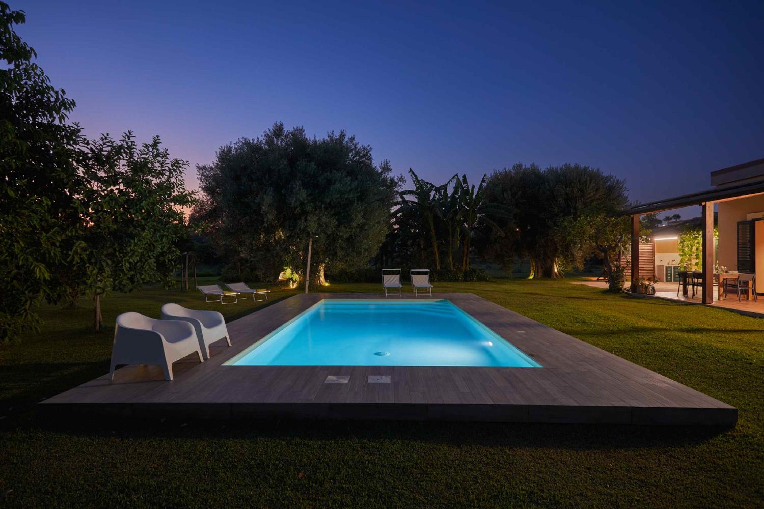 Tenuta della Pergola is the most exclusive accommodation offered within the Hiresicily property. This configuration combines three independent houses set within the same Mediterranean garden, comfortably hosting between 12 and 18 guests. Guests have access to two private heated swimming pools.