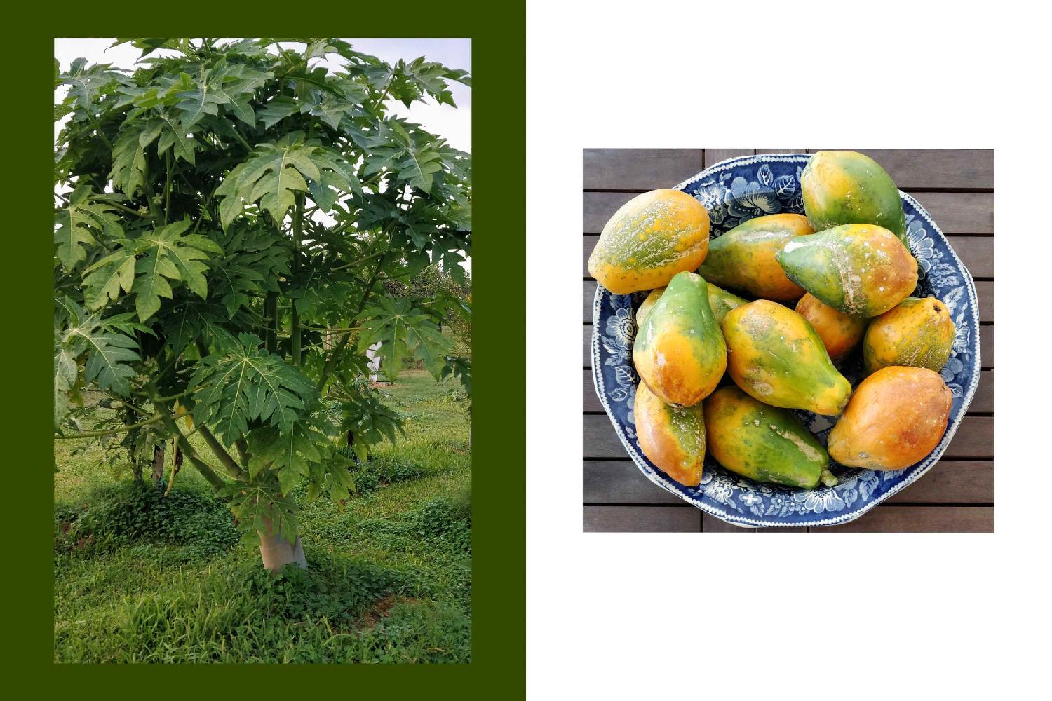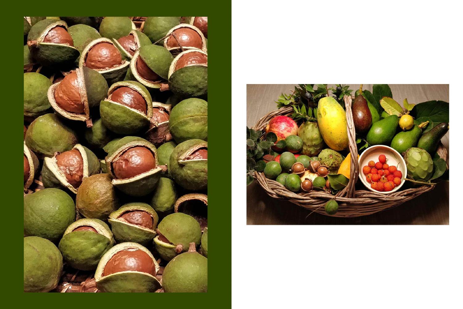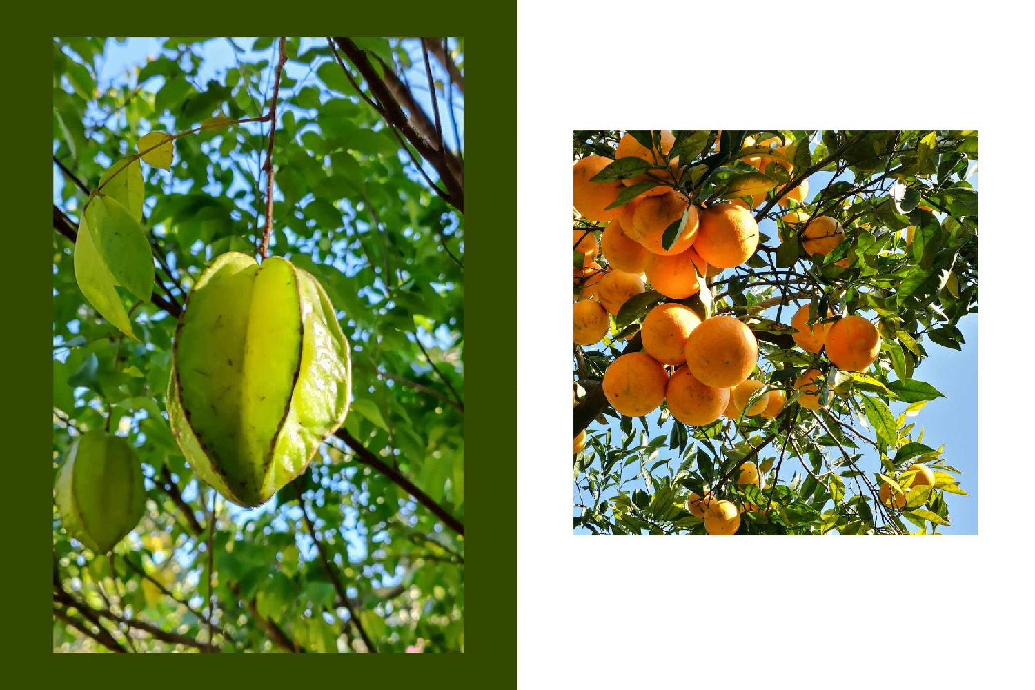 Guests staying at the estate can pick fresh organic fruit directly from the garden, including lemons, oranges, mandarins, clementines, grapefruits, figs, pomegranates, mulberries, persimmons, apricots, peaches, bananas, feijoa, mango, avocado, guava, cherimoya, black and white sapote, passion fruit, papaya and many other varieties. Seasonal vegetables are also grown in the garden.