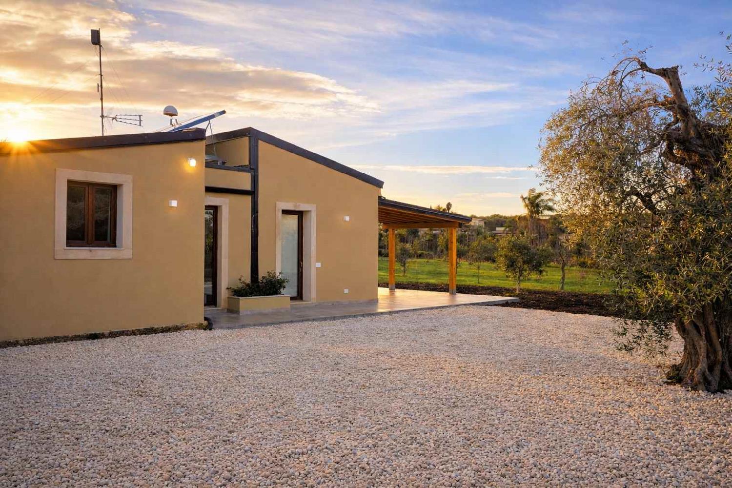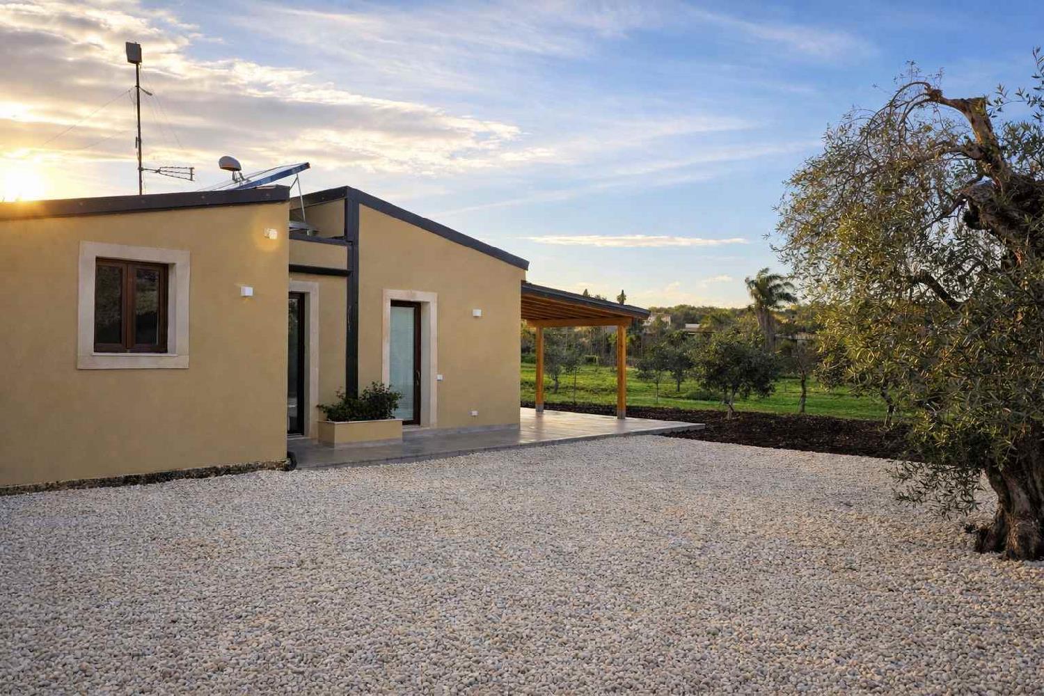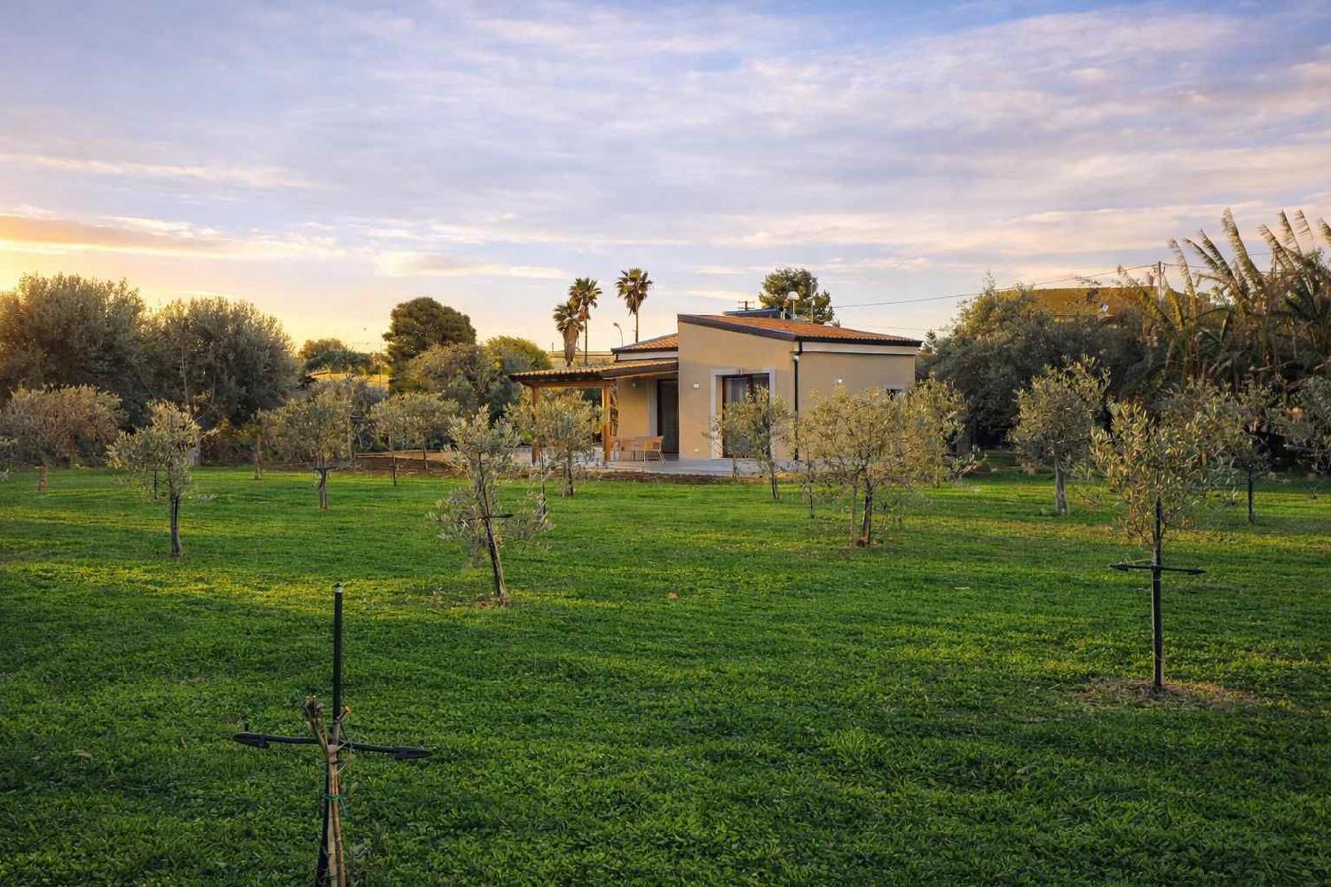 The estate is located only 350 meters from the sandy beach of Lido di Noto, on the south-eastern coast of Sicily, and is surrounded by more than 25,000 square meters of gardens filled with lemon trees, olive trees, Mediterranean fruit trees and numerous tropical plants.